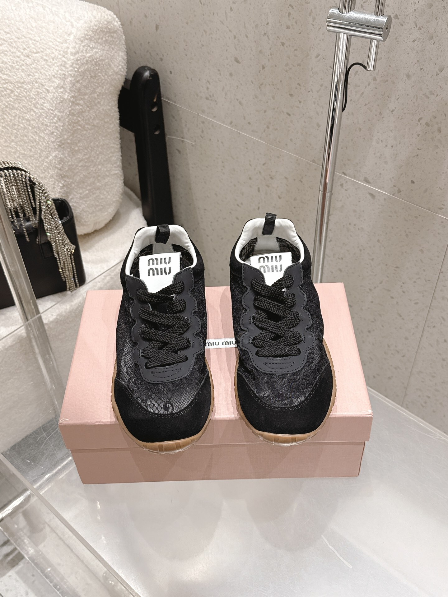 Этот обувь имеет качество 1:1 (превосходное). Используемые материалы идентичны оригинальным. Знаки товарных знаков Miu Miu не поддаются аутентификации. Фотографии, сделанные фактическим обувь, то, что вы получите, будут на 100% одинаковыми с нашими фотографиями.