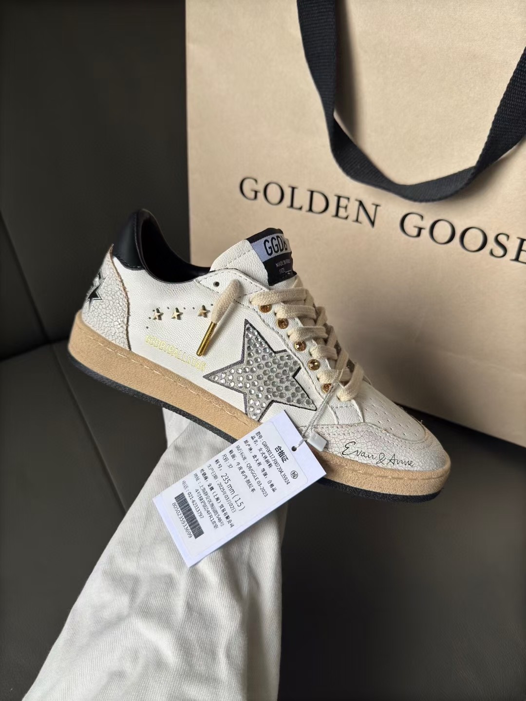 Этот обувь имеет качество 1:1 (превосходное). Используемые материалы идентичны оригинальным. Знаки товарных знаков Golden Goose не поддаются аутентификации. Фотографии, сделанные фактическим обувь, то, что вы получите, будут на 100% одинаковыми с нашими фотографиями.