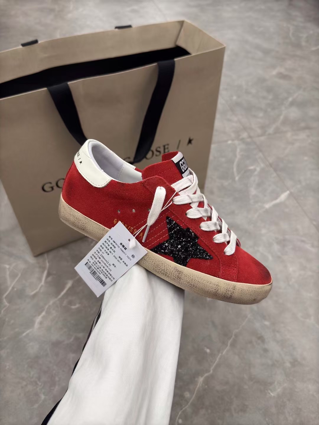 Этот обувь имеет качество 1:1 (превосходное). Используемые материалы идентичны оригинальным. Знаки товарных знаков Golden Goose не поддаются аутентификации. Фотографии, сделанные фактическим обувь, то, что вы получите, будут на 100% одинаковыми с нашими фотографиями.